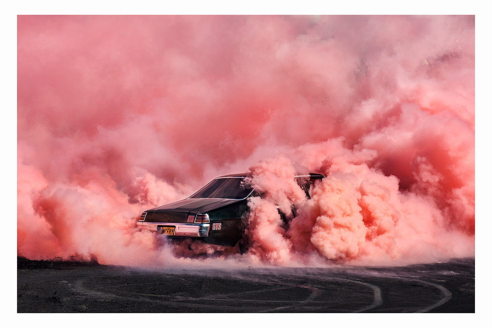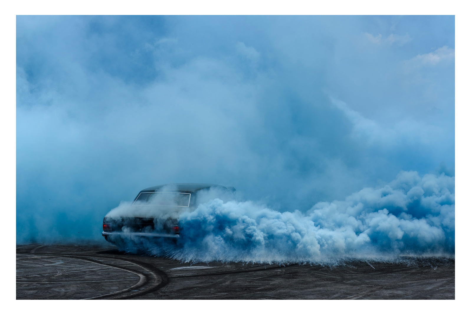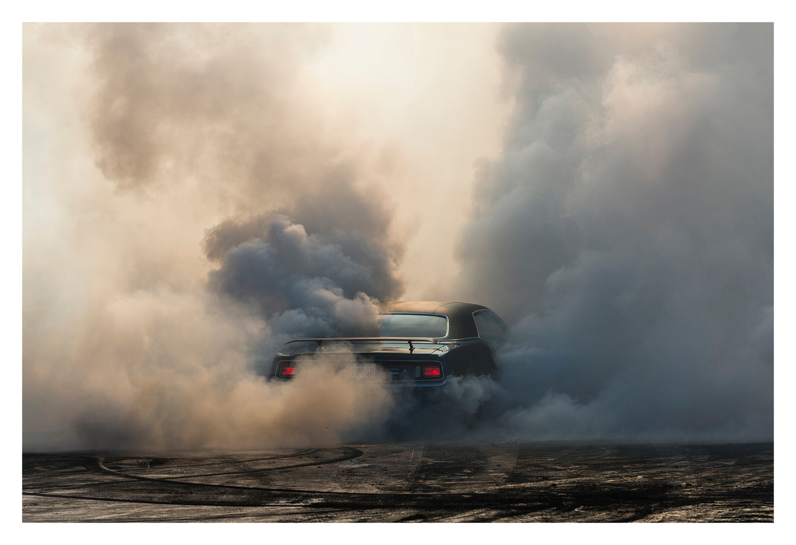"Discover fine art images of muscle cars floating in colourful plumes of marshmallow-like smoke. Speed seekers pushing themselves and their machines to the limit in a personal quest for speed. The beautiful nothingness of the desert, and landscapes to dream into."