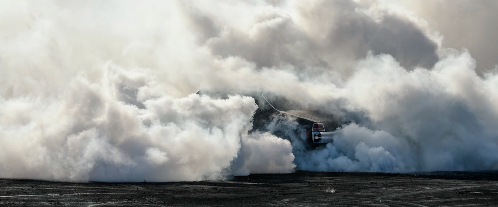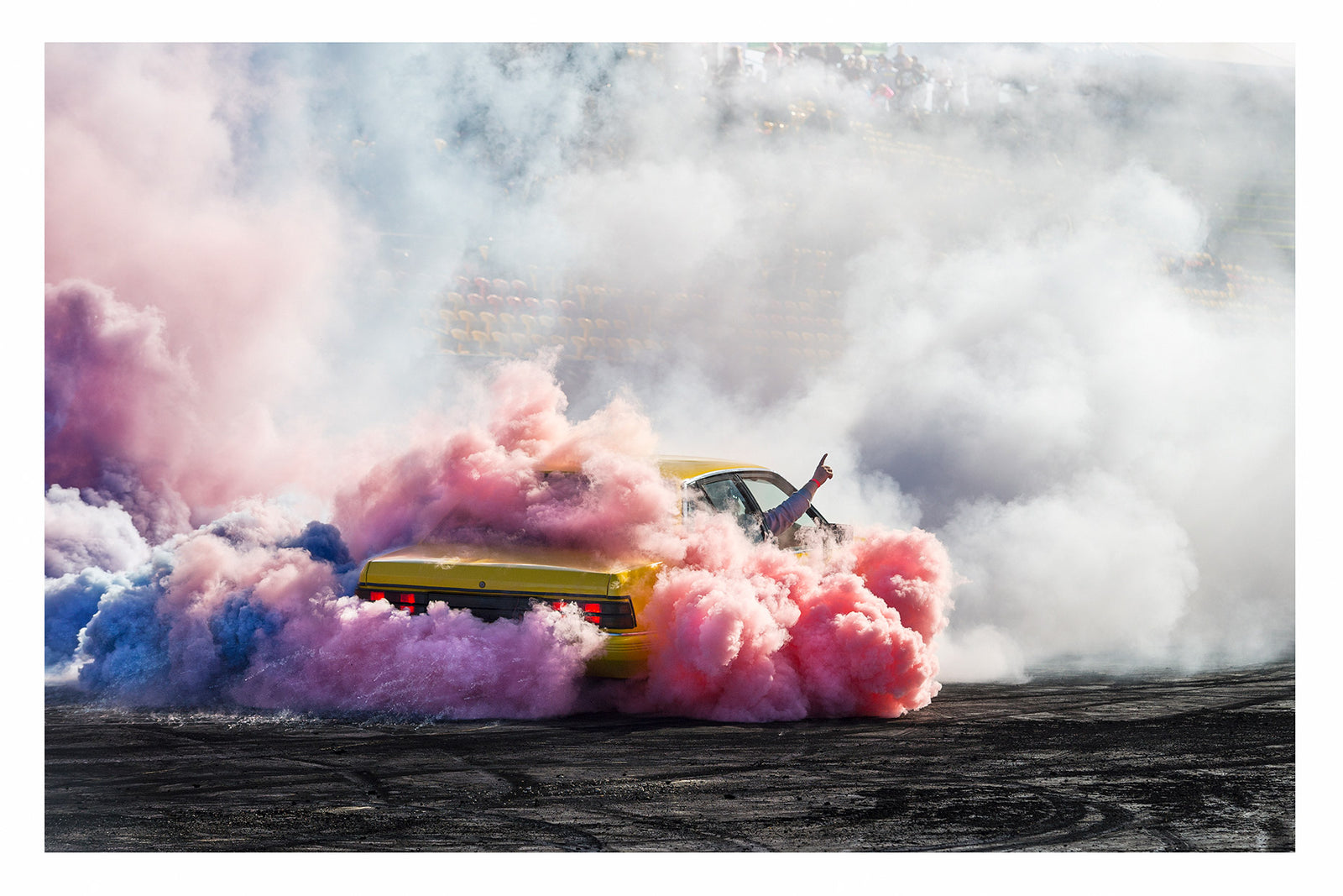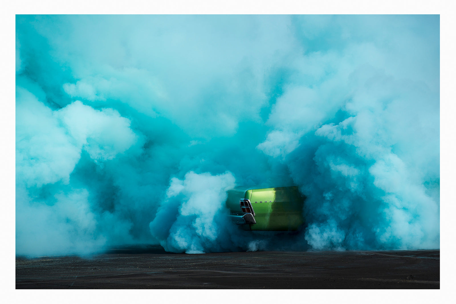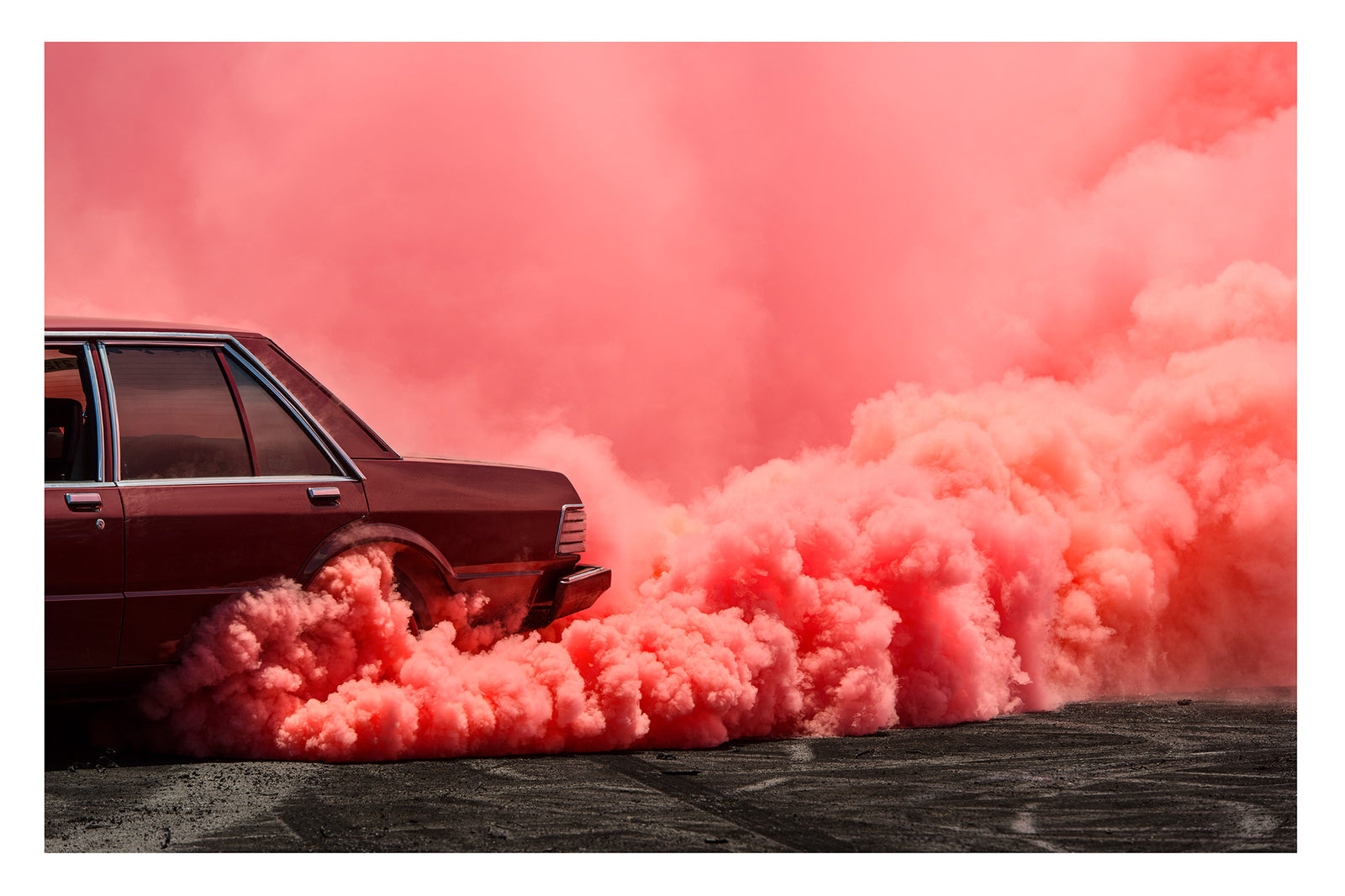 "Discover fine art images of muscle cars floating in colourful plumes of marshmallow-like smoke. Speed seekers pushing themselves and their machines to the limit in a personal quest for speed. The beautiful nothingness of the desert, and landscapes to dream into."