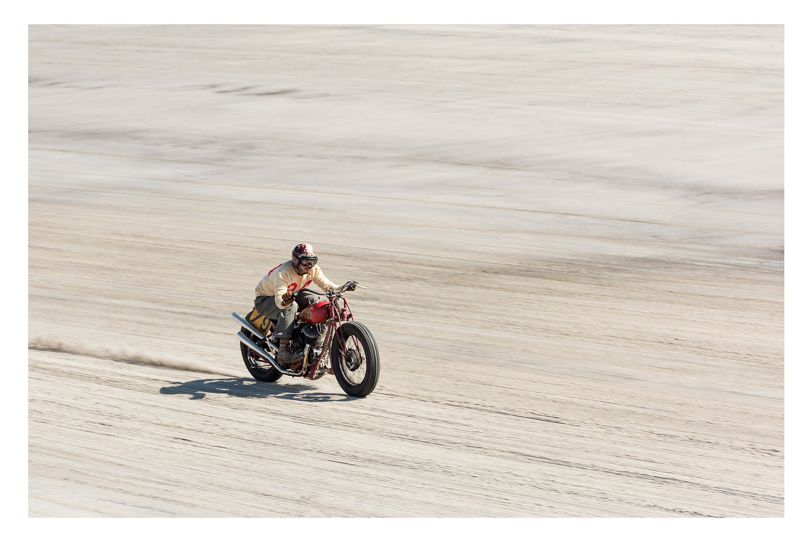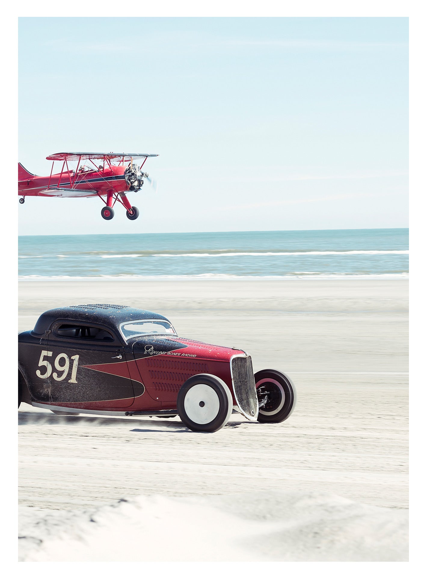 Vintage cars and motorcycles race across the shore simply for the sheer thrill of speed and camaraderie, free from the mundane of the modern world. Beach racing is a speed demon state of mind fuelled by the roar of engines, the heady aromatic mix of gasoline and burning oil.
