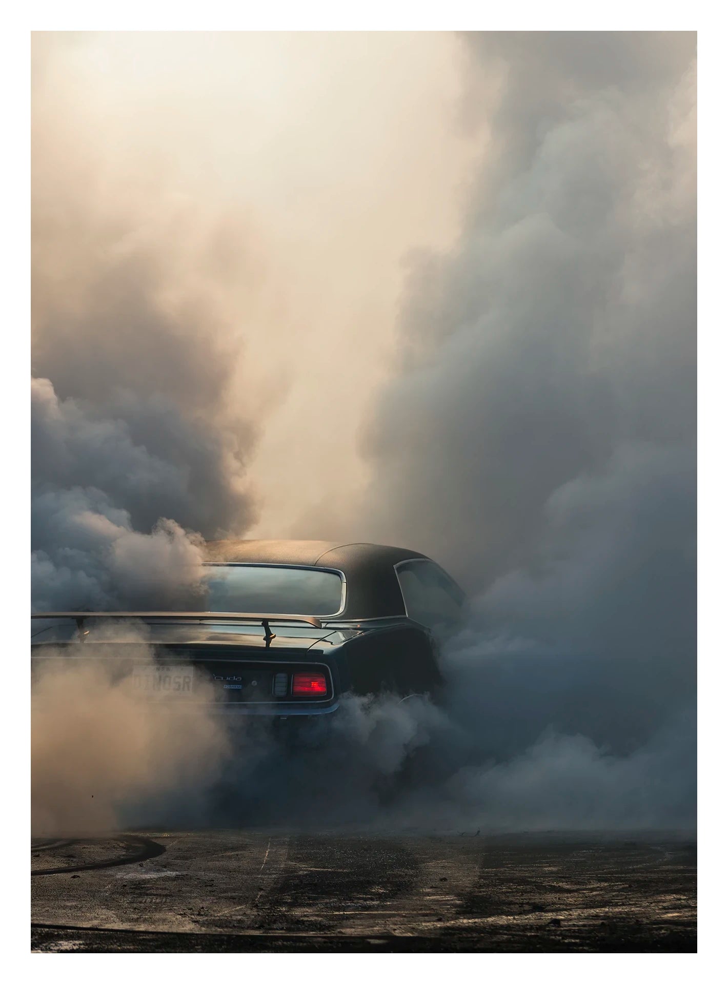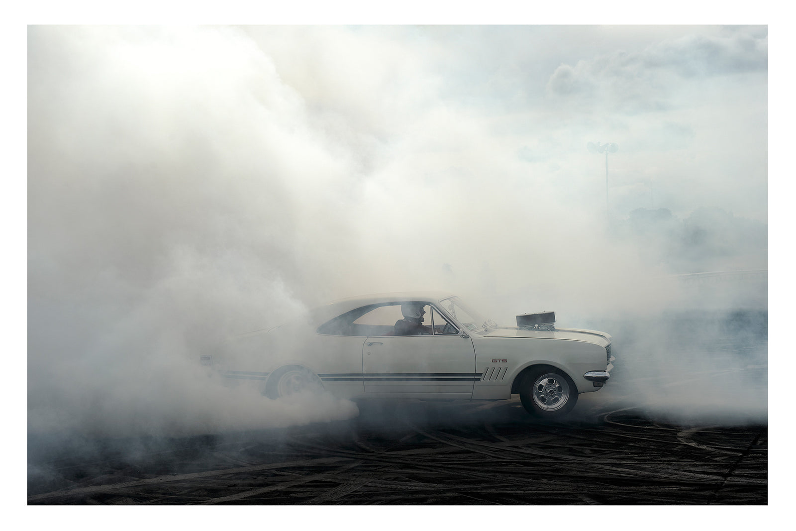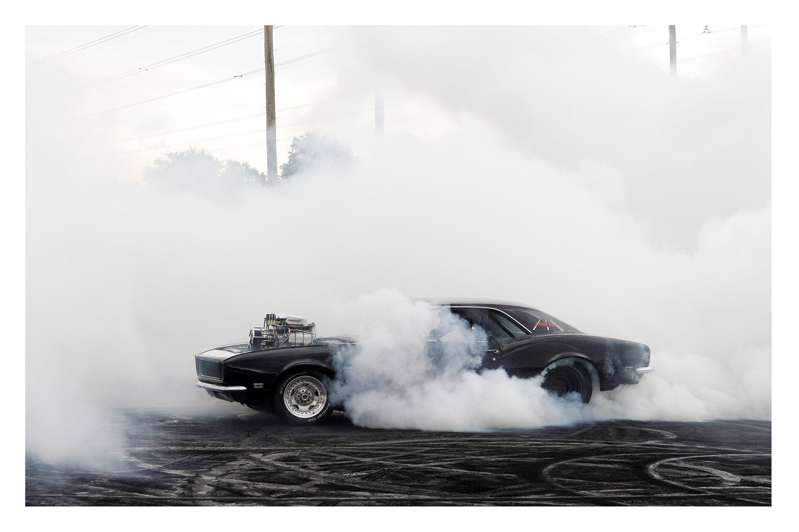 In the moment a burnout is an overwhelming bombardment of the senses. Utter chaos but fun. Photography has the power to reveal invisible beauty. Beauty expressed in a car spinning its rear wheels with the single purpose of destruction.