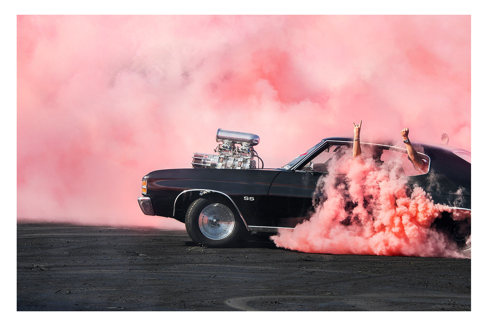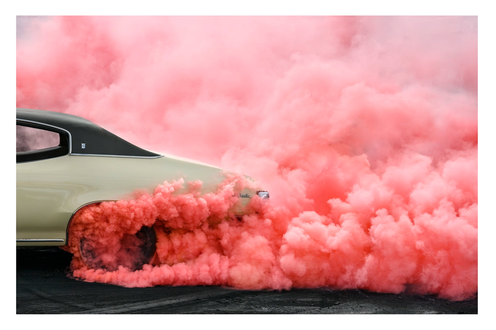 "Discover fine art images of muscle cars floating in colourful plumes of marshmallow-like smoke. Speed seekers pushing themselves and their machines to the limit in a personal quest for speed. The beautiful nothingness of the desert, and landscapes to dream into."